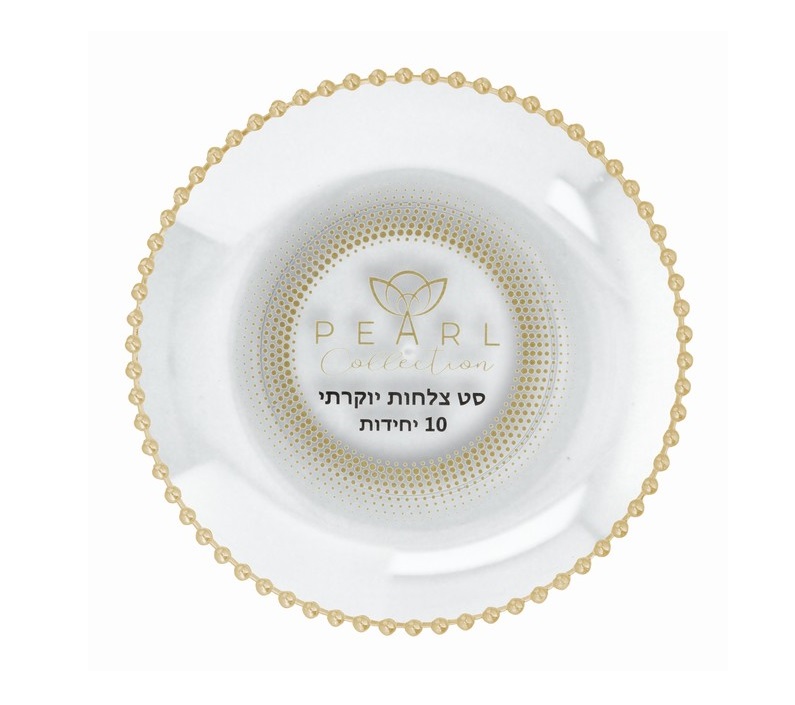 - 10 צלחות בעיצוב שקוף-זהב עם דוגמת פנינים אלגנטית.