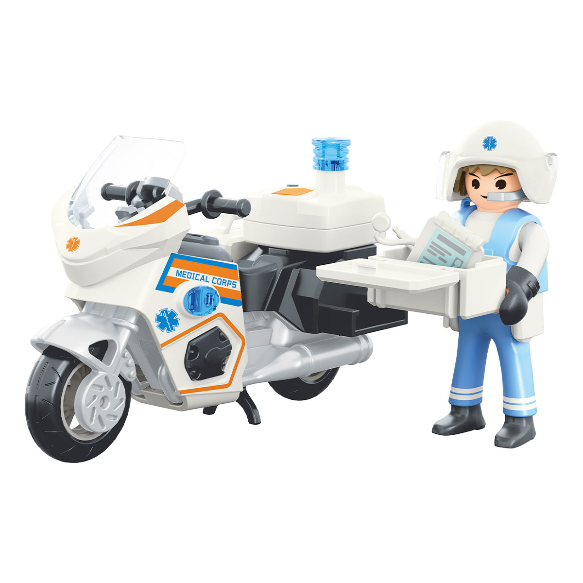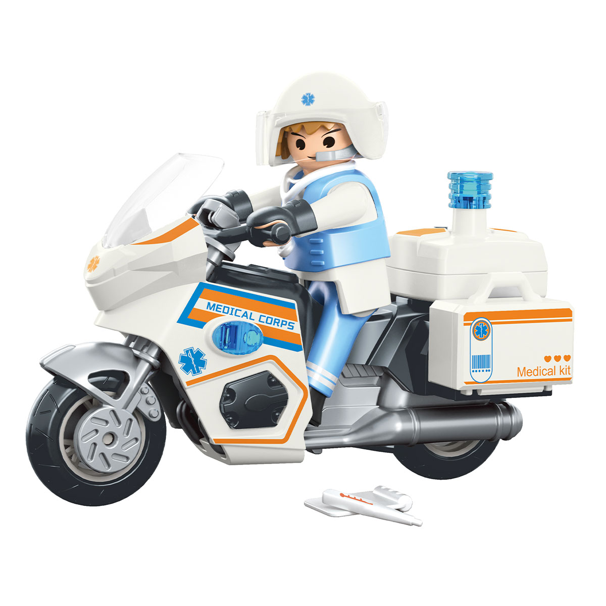 אופנוע חילוץ רפואי – Power Planet הצטרפו לצוות הרפואי עם אופנוע החילוץ המהיר של Power Planet! הערכה כוללת אופנוע רפואי מתקדם עם אורות אזהרה, דמות מצילה רפואית ואביזרי עזרה ראשונה לחילוץ מהיר וטיפול בשטח. משחק דמיון זה מתאים לילדים מגיל 4 ומעלה, ומעודד חשיבה מהירה ויכולות פתרון בעיות בזמן חירום רפואי. מאפיינים עיקריים: