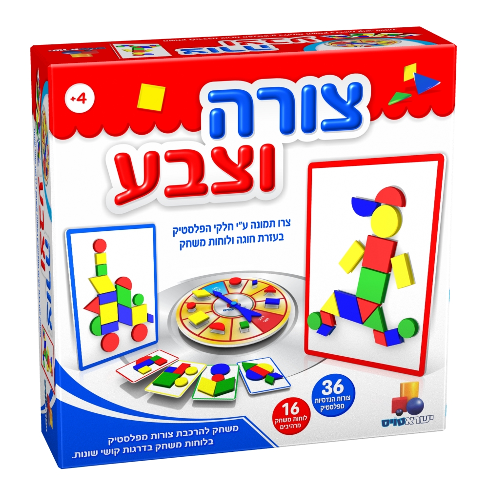 צורה וצבע הוא משחק הרכבה יצירתי שמאפשר לילדים ליצור דמויות וצורות מגוונות באמצעות חלקי פלסטיק צבעוניים. המשחק כולל 36 חלקי פלסטיק בצורות שונות ו-16 לוחות משחק ברמות קושי שונות, המסייעים לפיתוח המוטוריקה העדינה, הקואורדינציה והחשיבה היצירתית של הילד. בעזרת חוגה מהנה, הילדים בוחרים אילו חלקים לשים בכל סיבוב ויוצרים צורות מעניינות ומאתגרות. המשחק מתאים לילדים מגיל 4 ומעלה ומהווה חוויה מהנה ומשפחתית.מאפיינים עיקריים: