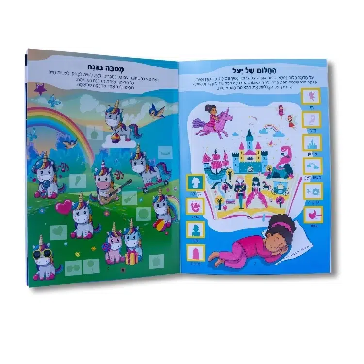 חוברת מדבקות צבעונית ומהנה עם עולם קסום של חד-קרן וחברים. מתאים לפעילות יצירתית ולימודית עם מדבקות איכותיות לשימוש רב-פעמי.